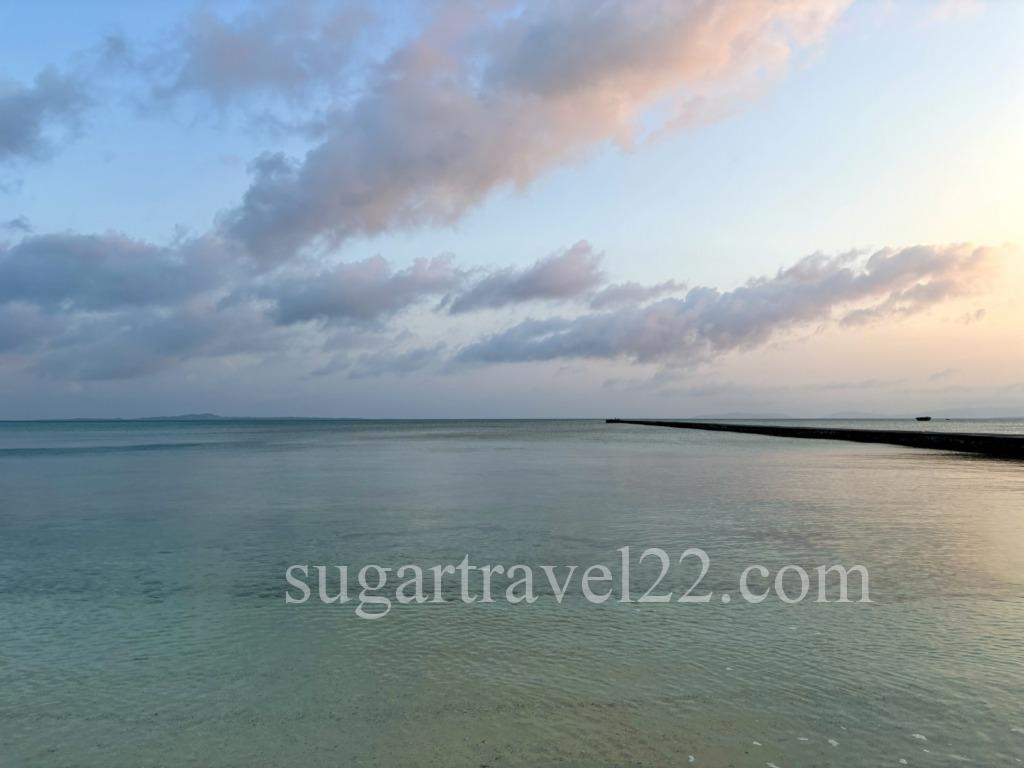 真っ青な海に伸びる伊古桟橋もきれいでしたし、柔らかい光の中で見る伊古桟橋も美しかったです。