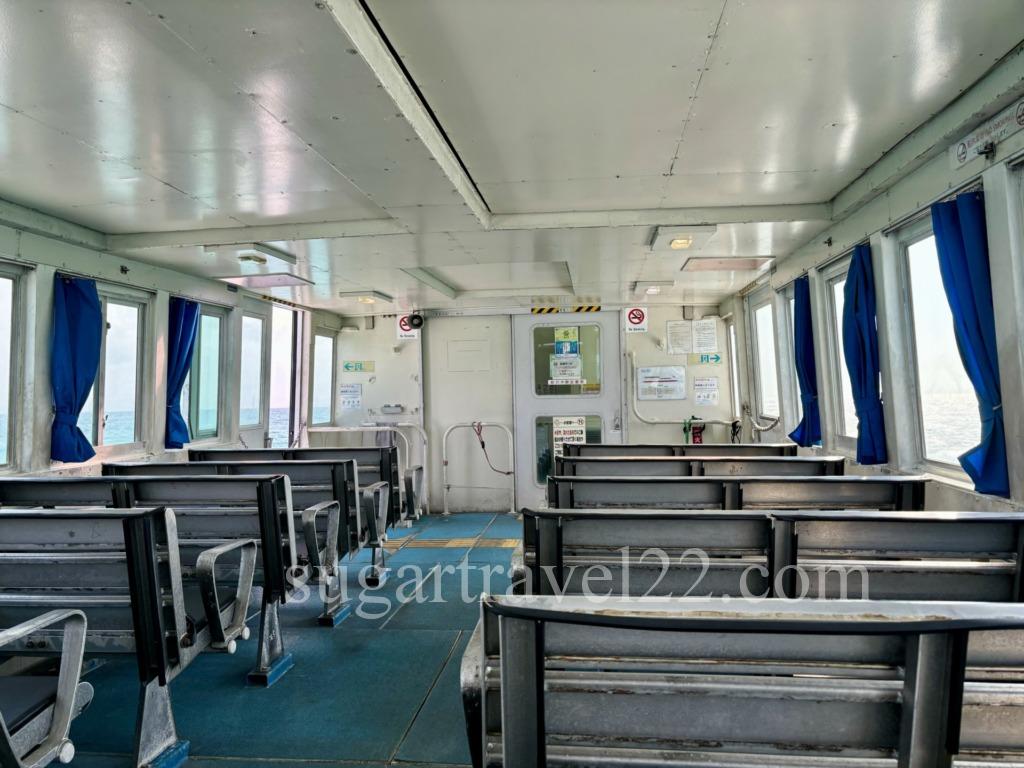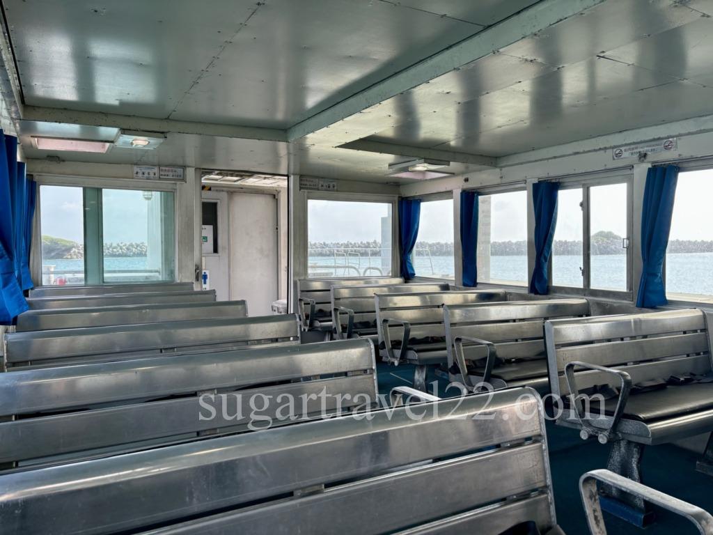 船はかなり大きいサイズだったにもかかわらず船内はほぼ満席。黒島とはやはり移動する人数が大きく違うようです。以前訪れた時に比べて、明らかに外国人観光客が増えていました。