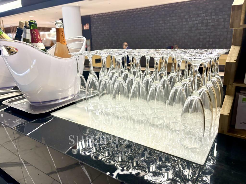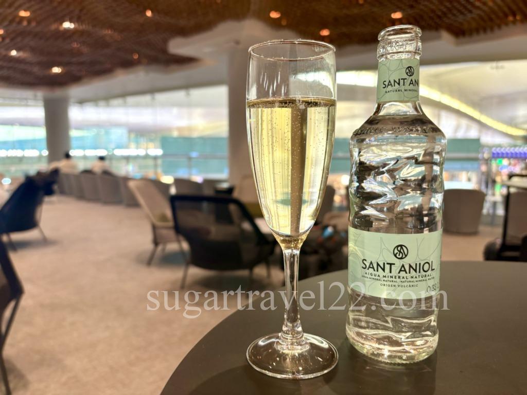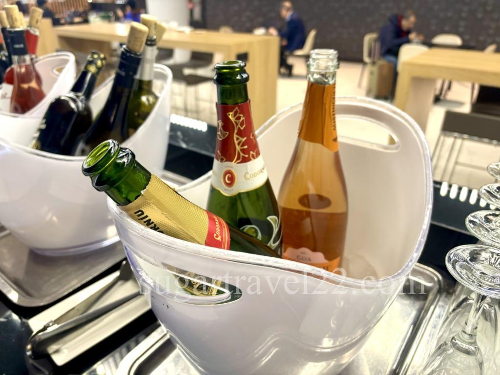 朝のフライトでしたが、日本時間はもう夕方だったので早速スパークリングと。