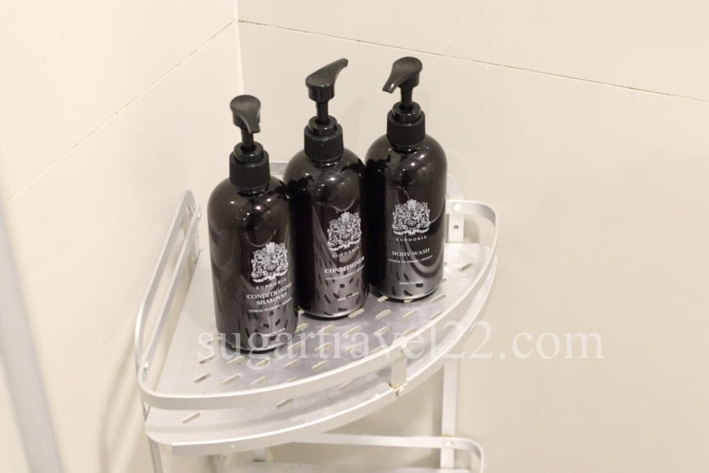 シャンプー、トリートメント、ボディソープも完備。