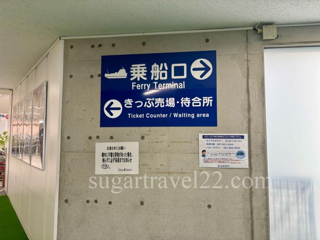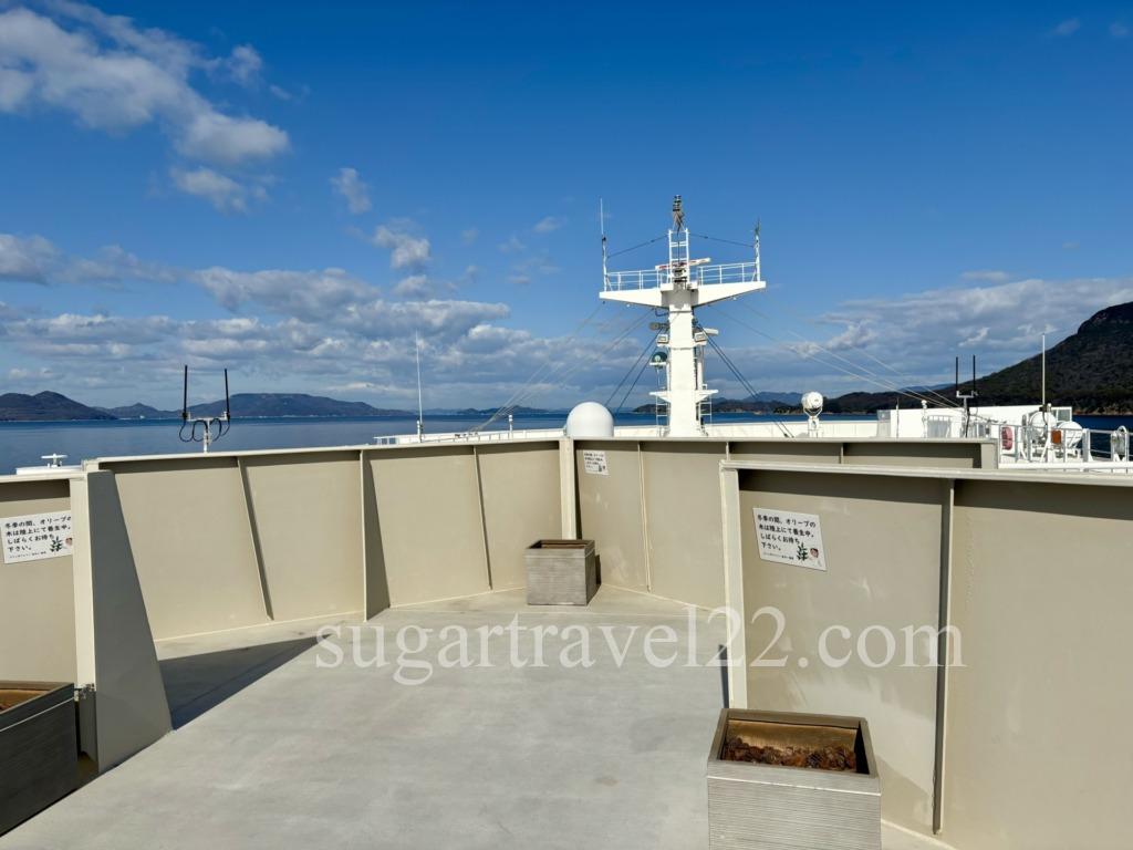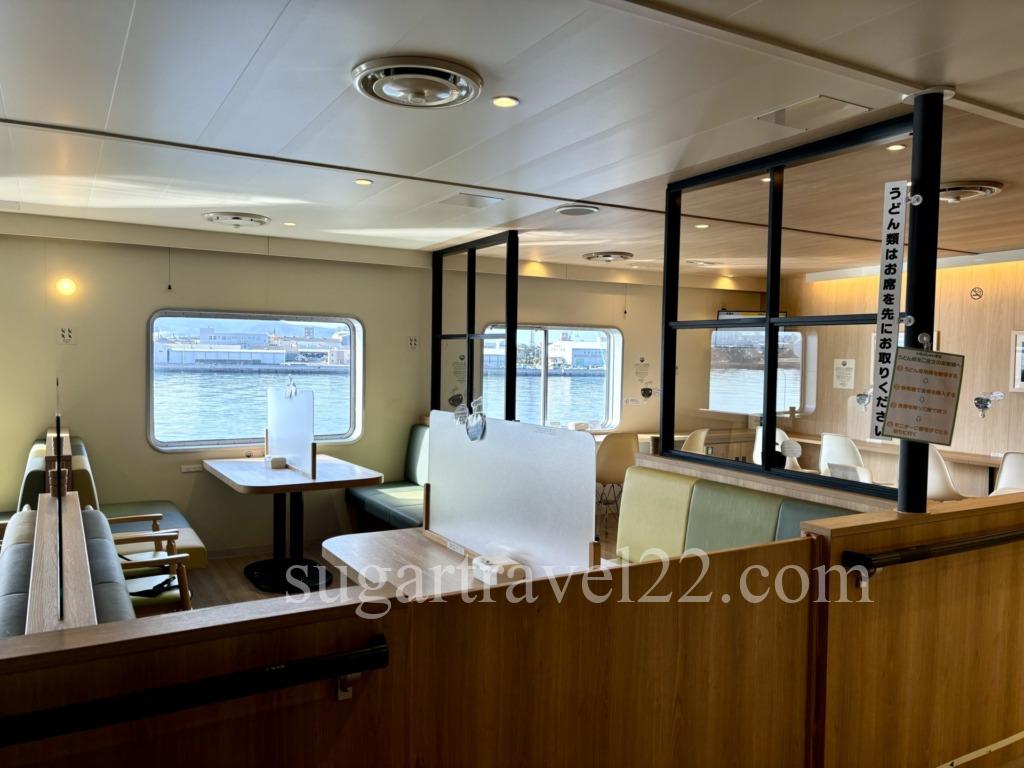 船内も小豆島に寄港したあと一気に混みましたので、お目当ての場所がある方はそれまでに確保しておいた方がよさそうです。