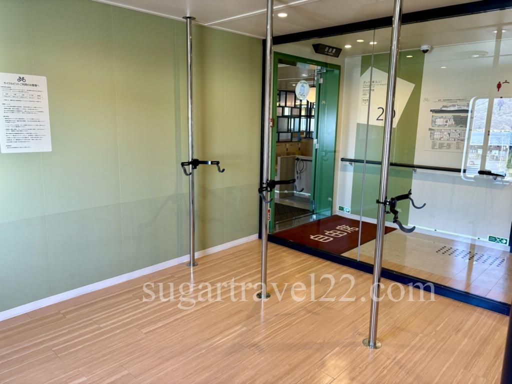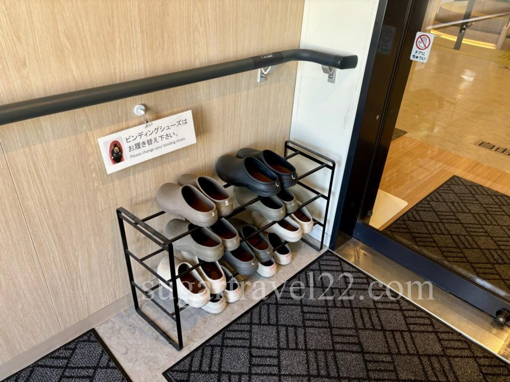 サイクルピットのほか、なんとビンディングシューズ履き替え用のシューズまで用意されており、至れり尽くせり!