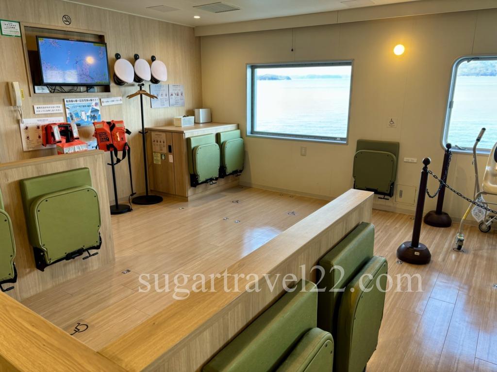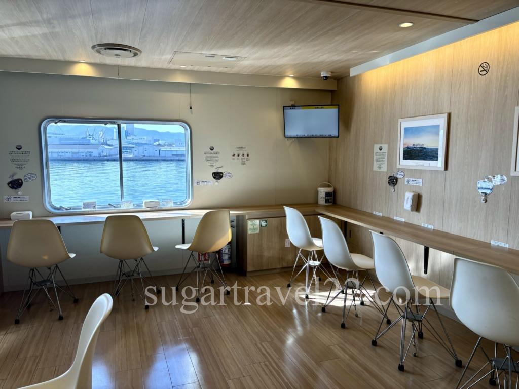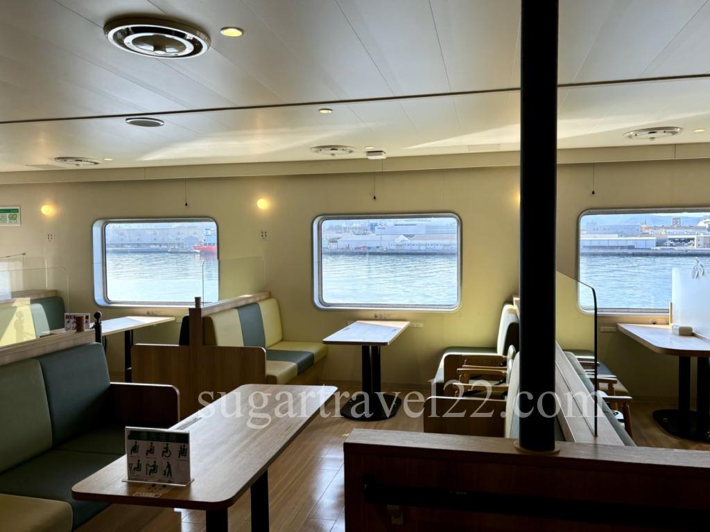 「瀬戸内海に浮かぶテラスリゾート」をコンセプトとしたゆったりとした作りの船内が特徴です。