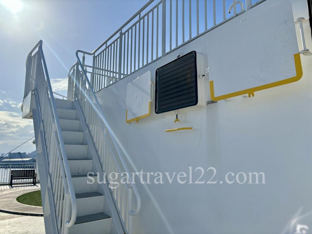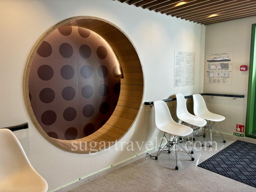 なぜこんなところに椅子が?と思いましたが、下船後にここで座って同行者を待つ方が多いみたいでした。
