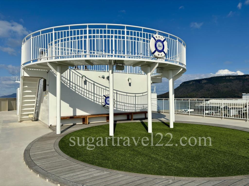 船内を散策したり、デッキで景色を眺めながら飲んだり、ちょっと昼寝をしたりであっと言う間に神戸港へ。