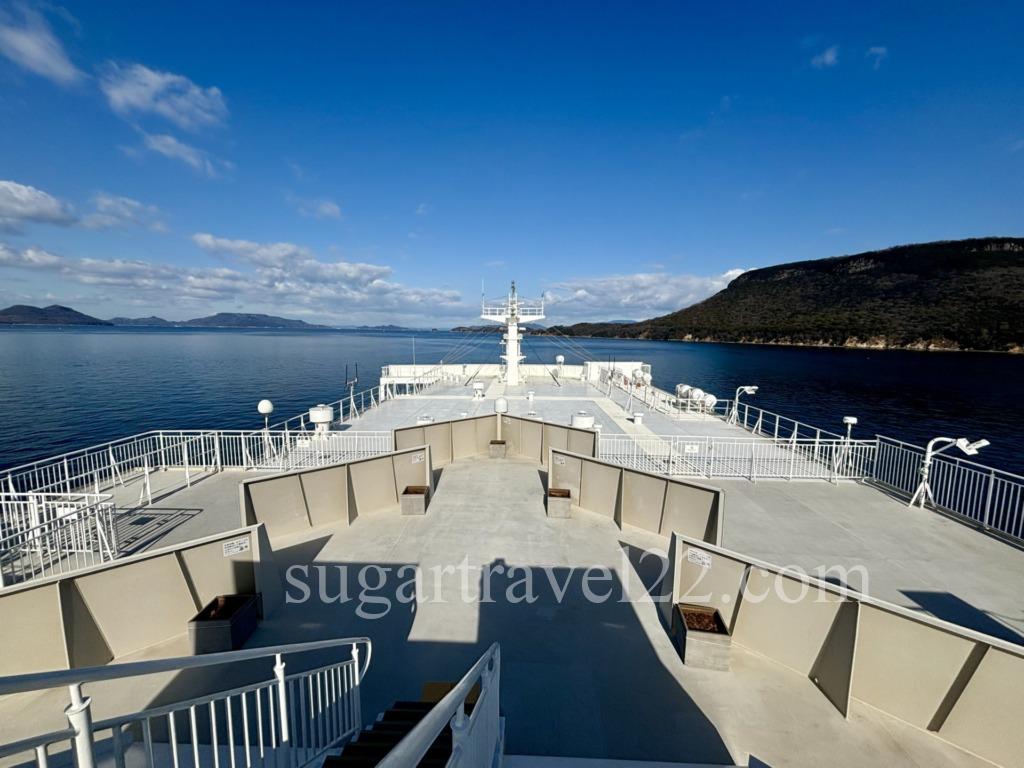 なにより、瀬戸内海の海は驚くほど穏やかで、冬の伊豆諸島などに行く人間からしたらまるで湖なので(笑)、ゆったりとした船旅を楽しめること間違いなし。