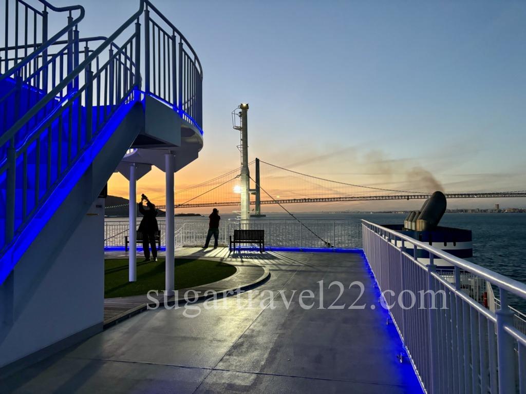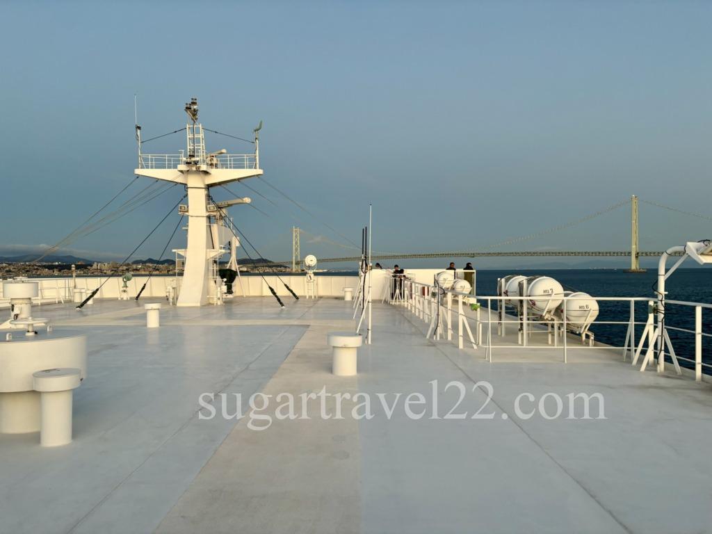 時期にもよりますが「14:00高松発18:40神戸着」は船からサンセットやマジックアワーと一刻一刻と変わる景色をのんびりと眺めることができ、写真好きの方も特に楽しめると思います。