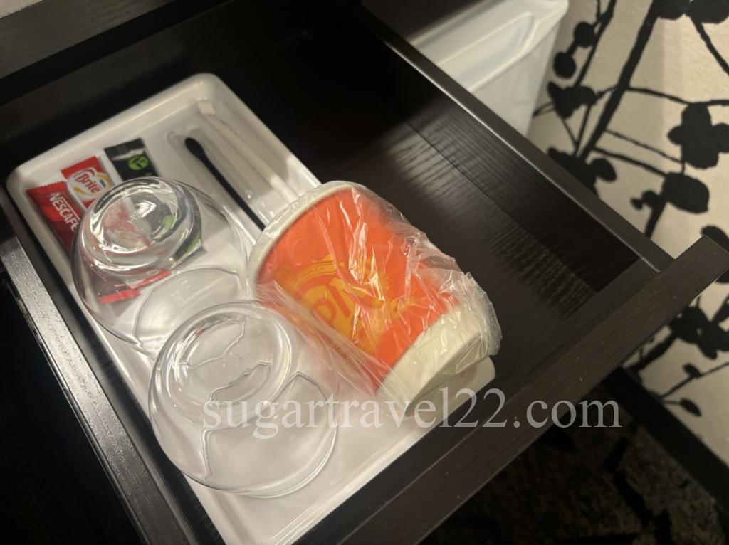 グラスの他にホット用に紙コップが用意されていました。しかもスリーブ付きです。
