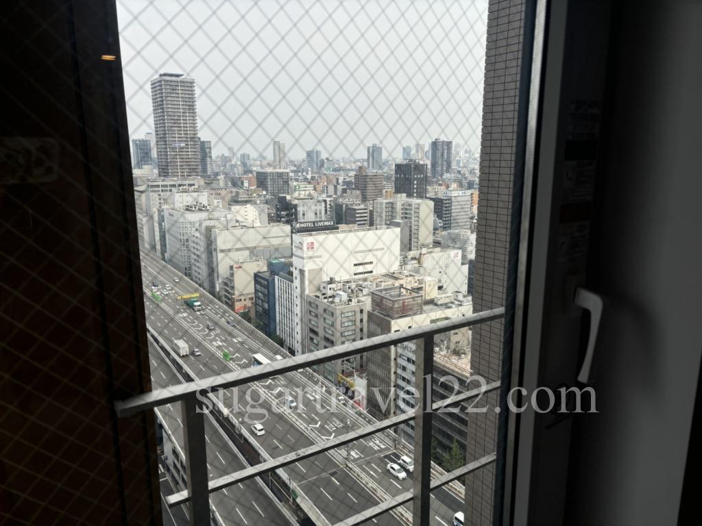 窓の外は阪神高速16号大阪港線。音はそこまで気になりませんでした。