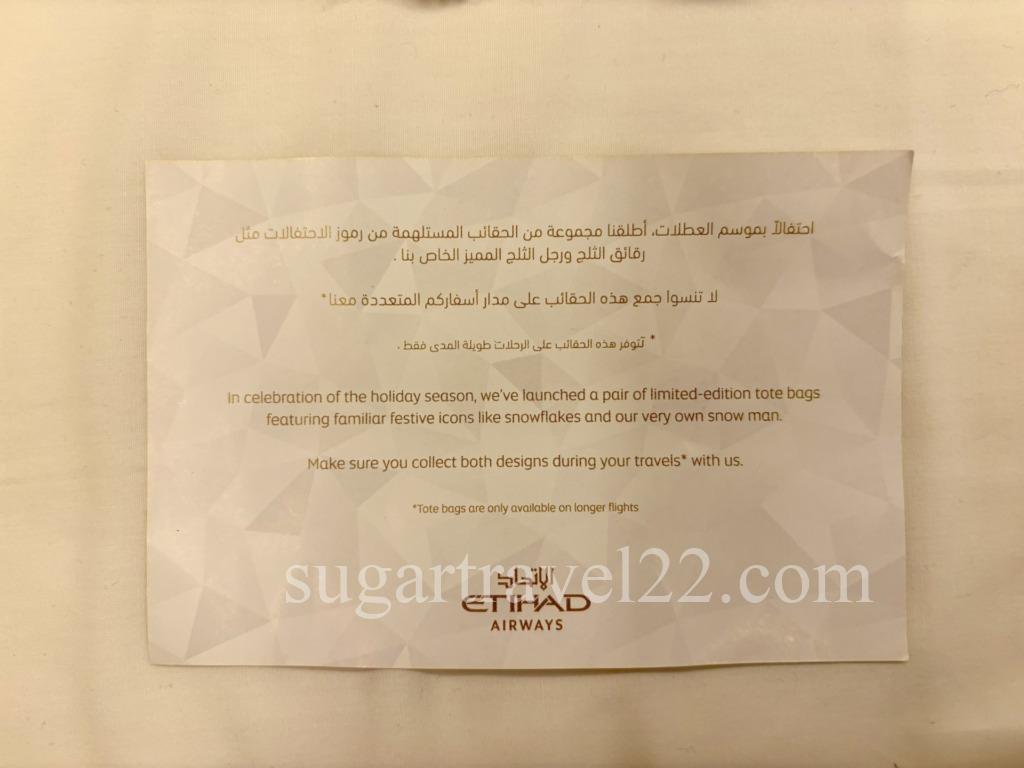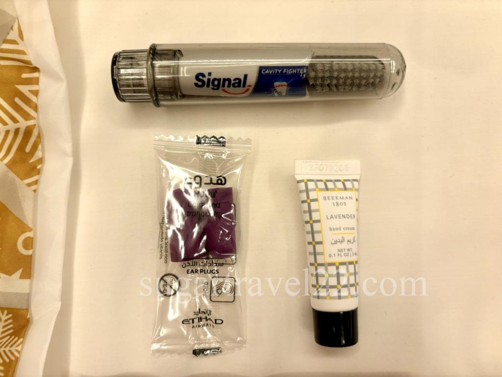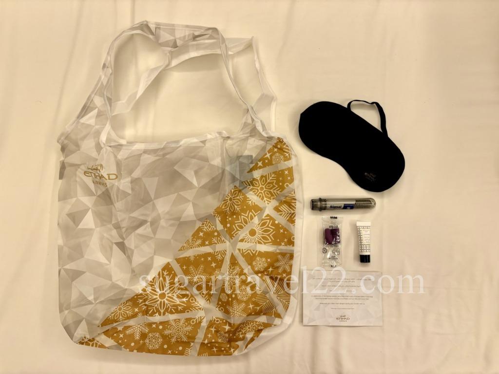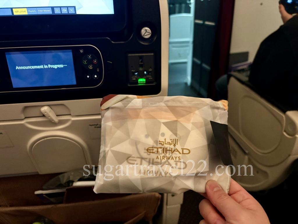 エティハド航空では6時間以上のフライトの場合、エコノミーでもアメニティポーチが配られるようです。