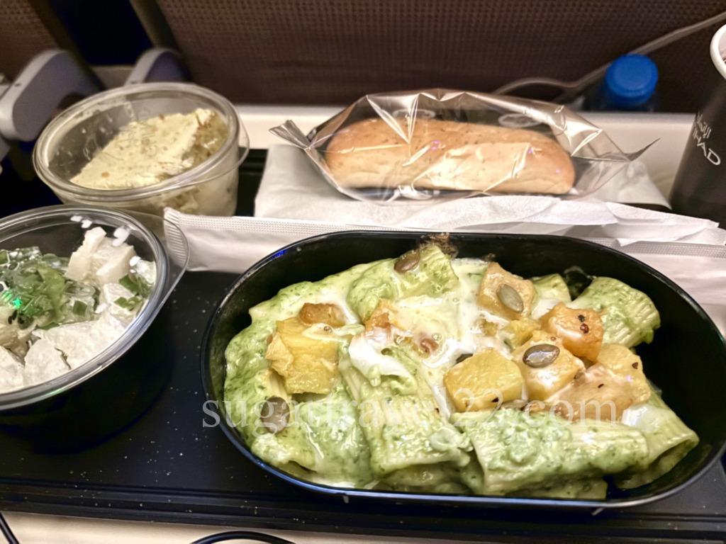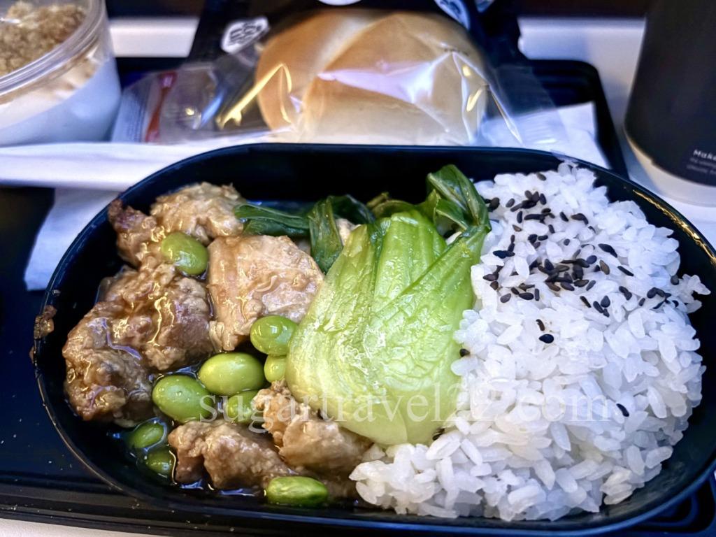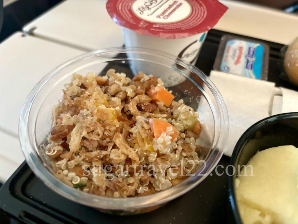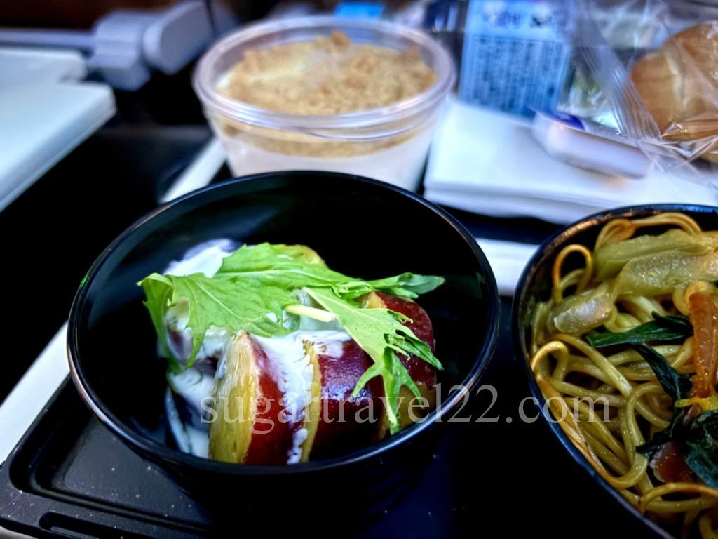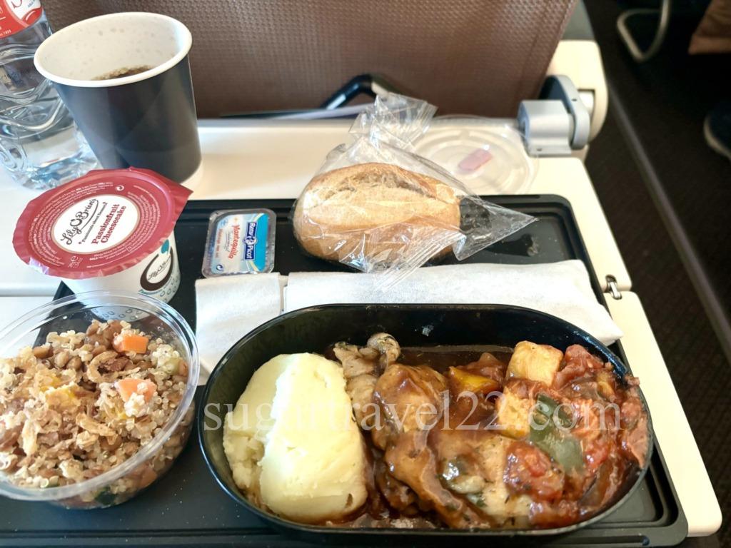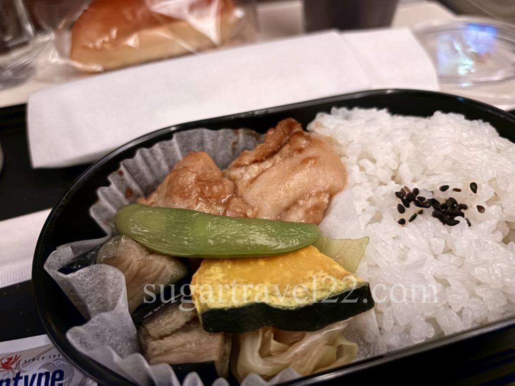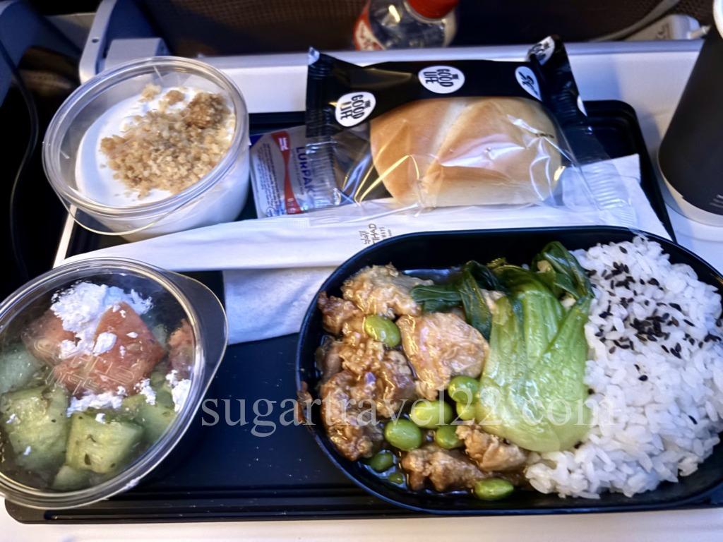 美味しかったけど機内って動かないので血糖値が上がりっぱなしになってしまうので、お腹がいっぱいであまり食べることができませんでした。無念。