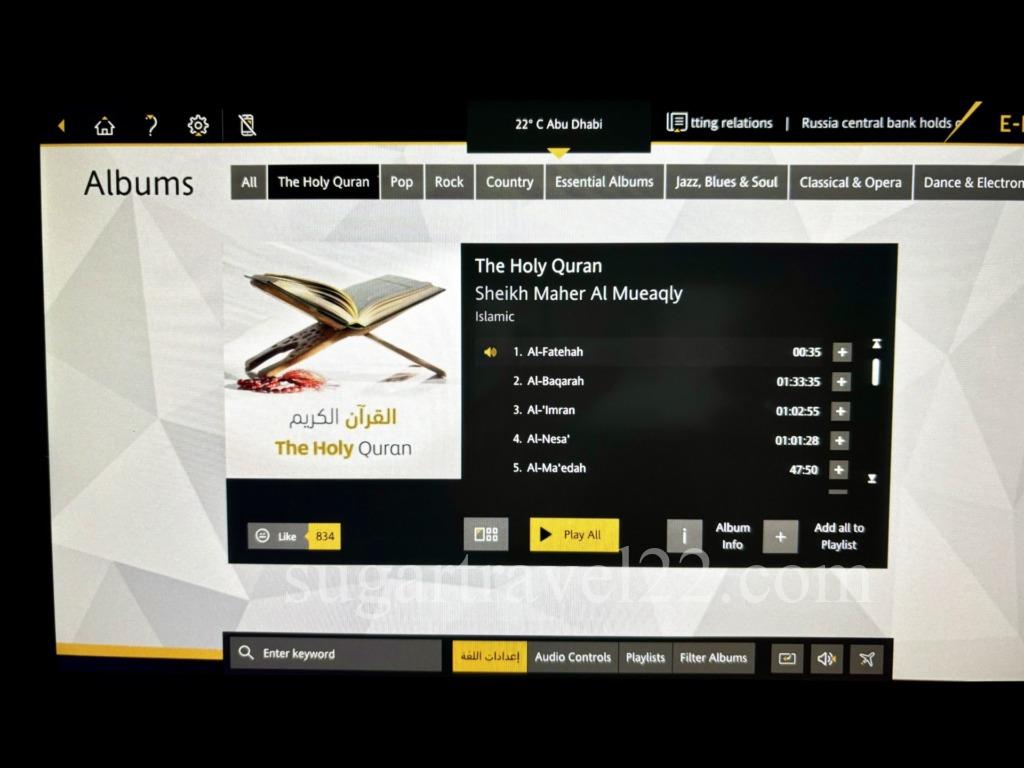 機内コンテンツですが、日本語メニューはなく全て英語かアラビア語でした。