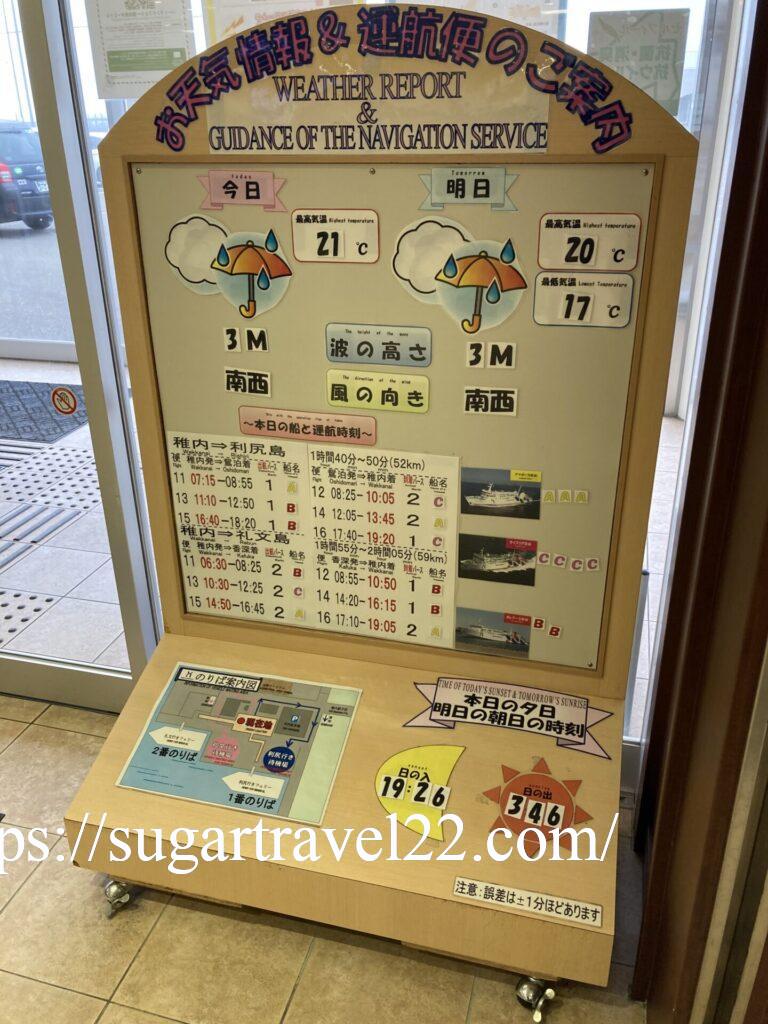 利尻島は鴛泊港行きです。読み方が難しいですよね。「おしどまり」と読みます。