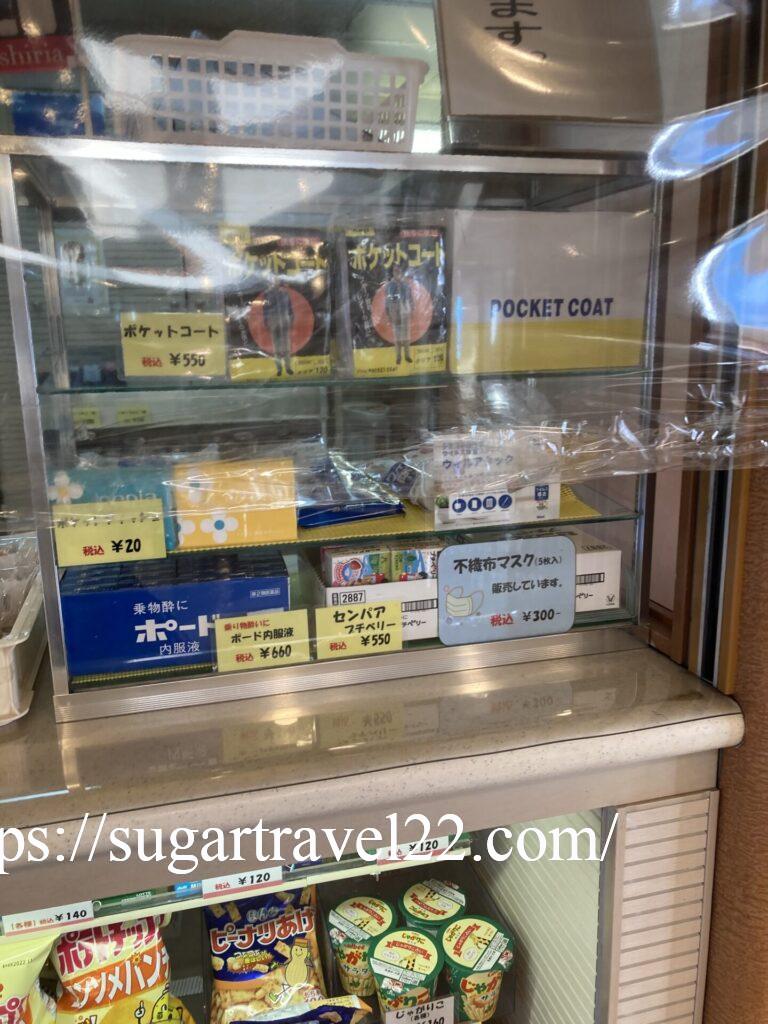 売店ではお菓子やオリジナルグッズ、酔い止めも売ってましたが、営業時間が決まっているようなので要注意です。