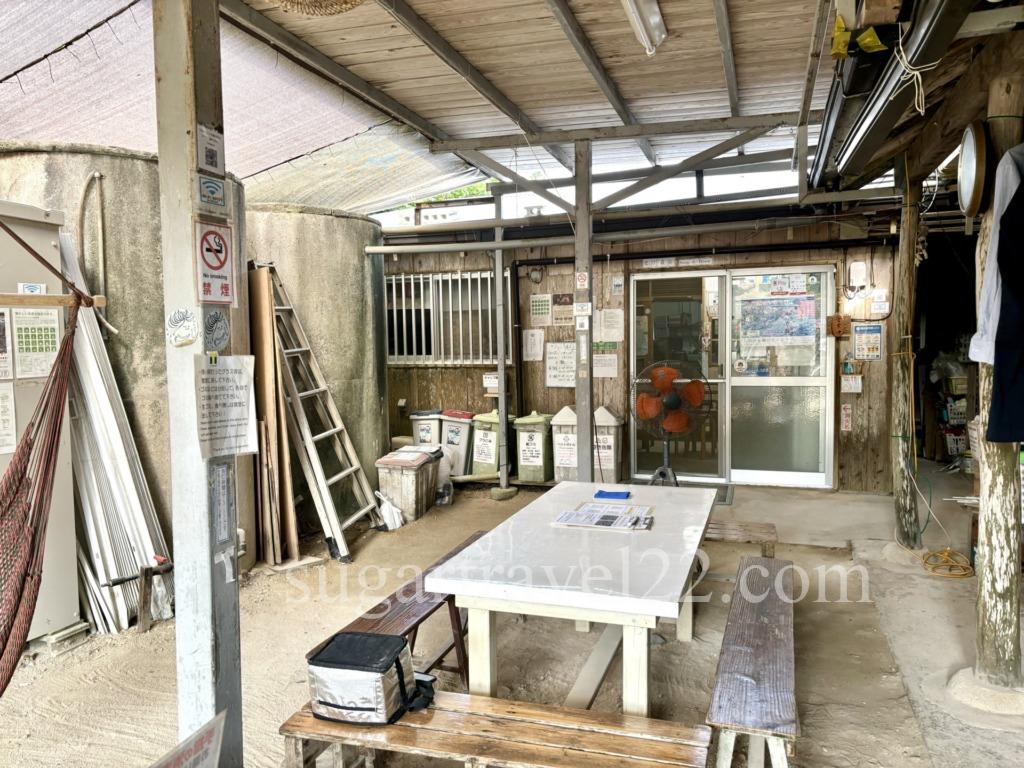 港から送迎をしてもらえるので、船の時間が決まったら宿の方に事前に連絡をします。