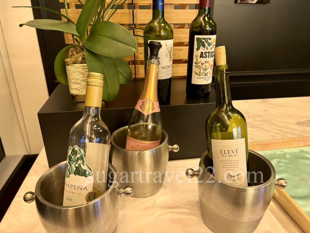 いつも書いていますが、ワイングラスがあると一気に好感度アップです。