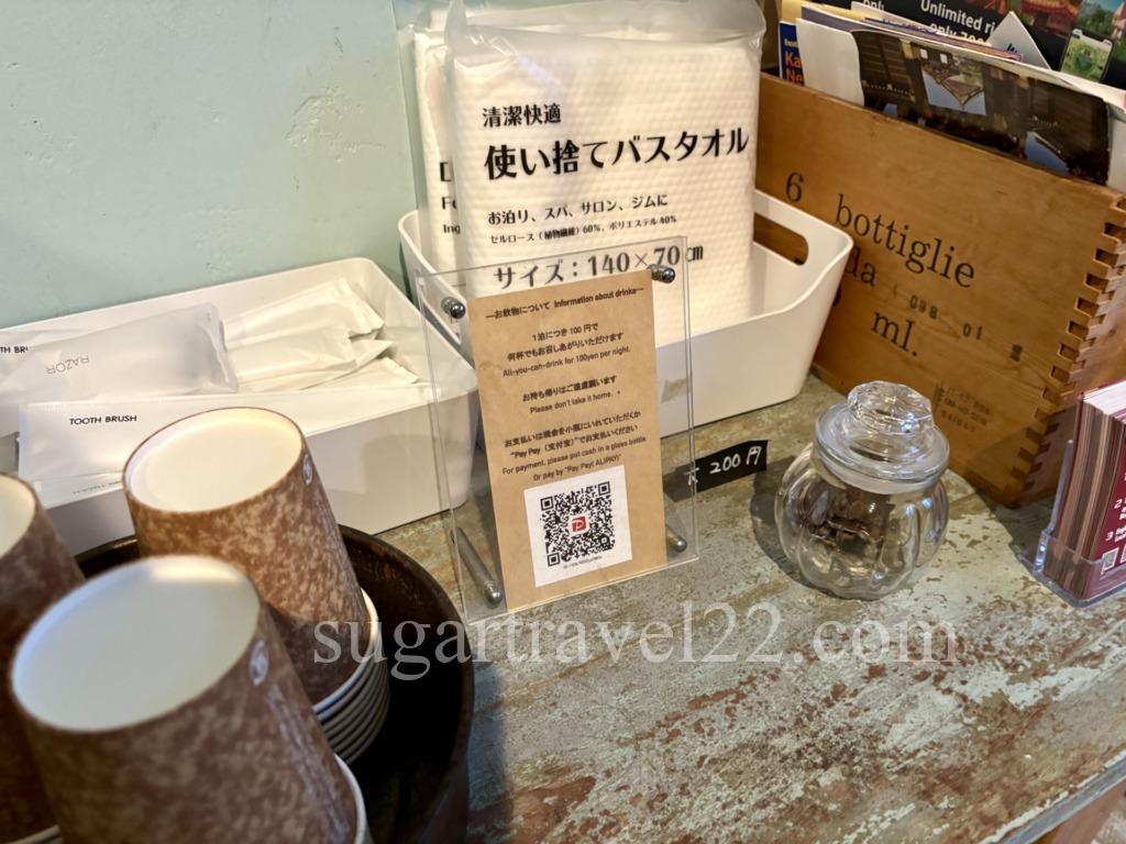 飲み物は100円払うと飲み放題というシステムです。