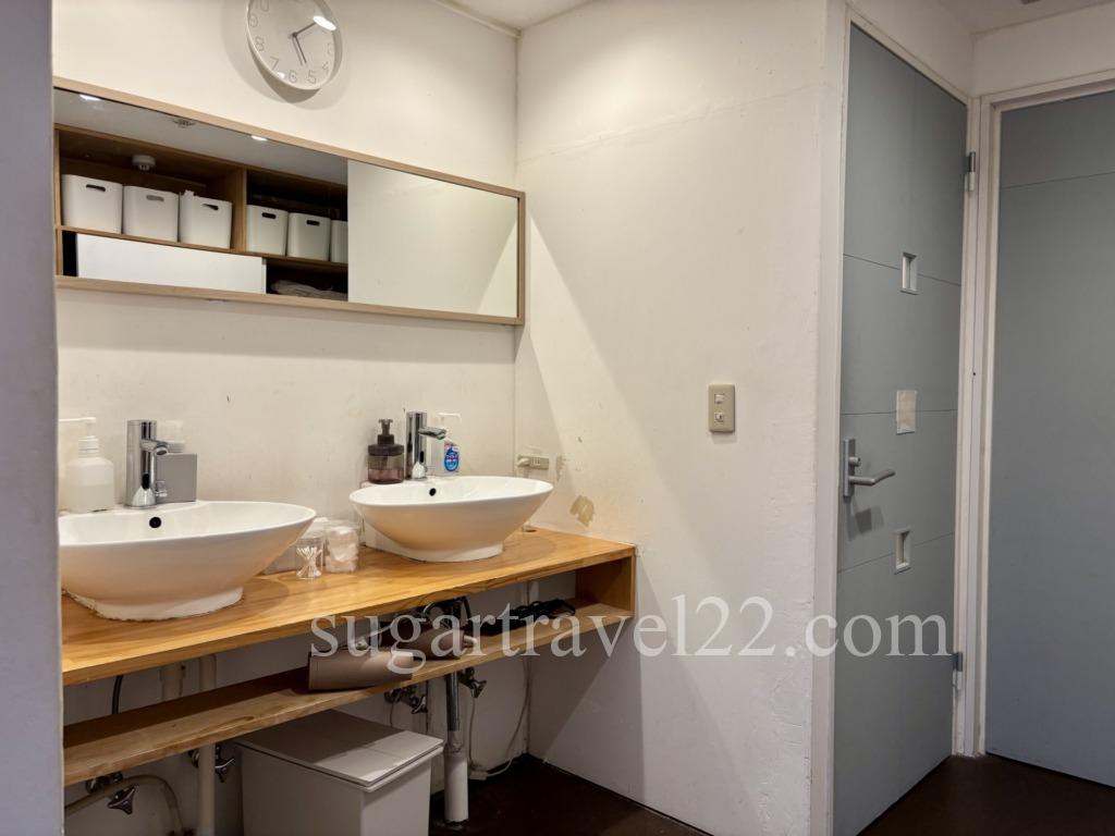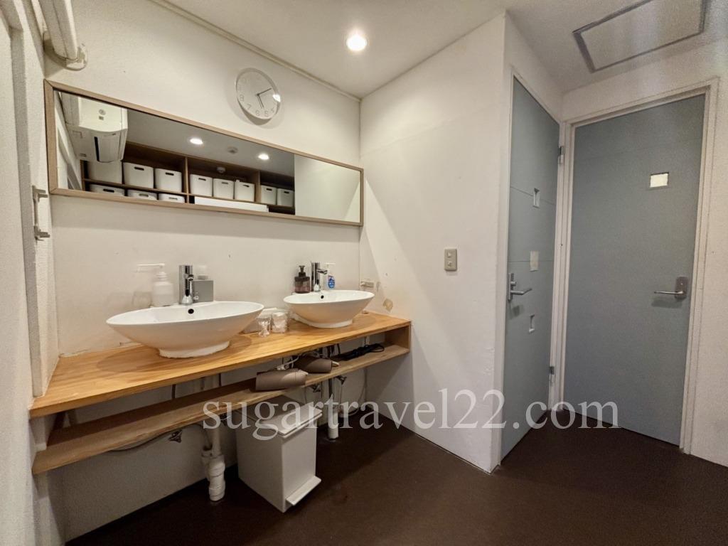 一方こちらはミックスドミトリーフロアにある共有のバスルーム。