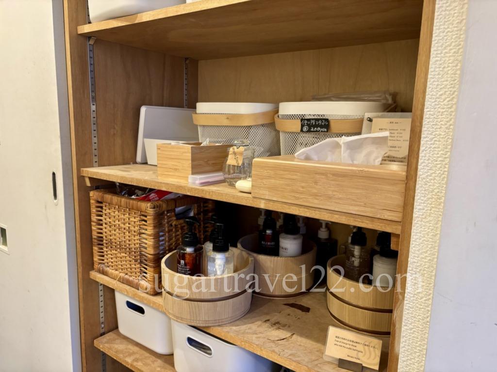 メイク落とし、シャンプー、トリートメント、ボディソープがひとまとめにセットになっており、このまま近隣の銭湯に持っていくことができます。