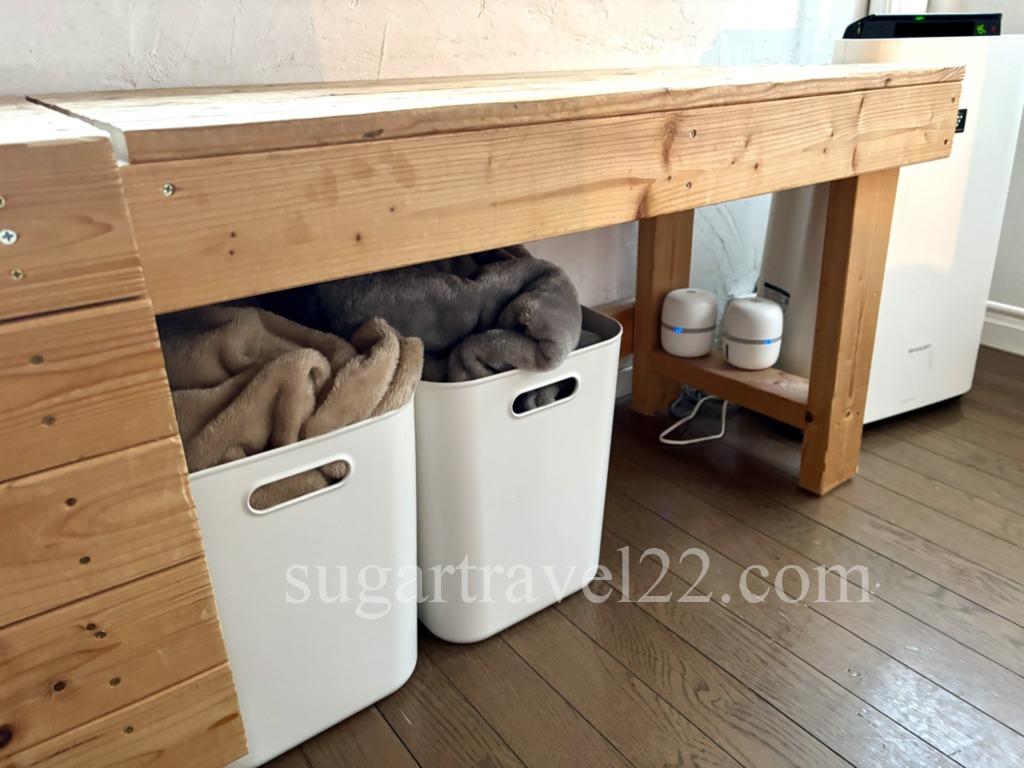 メガネやスマホ、カバンなど一通り枕元に置きたいタイプなので、これくらいの広さがないと不便なのです。