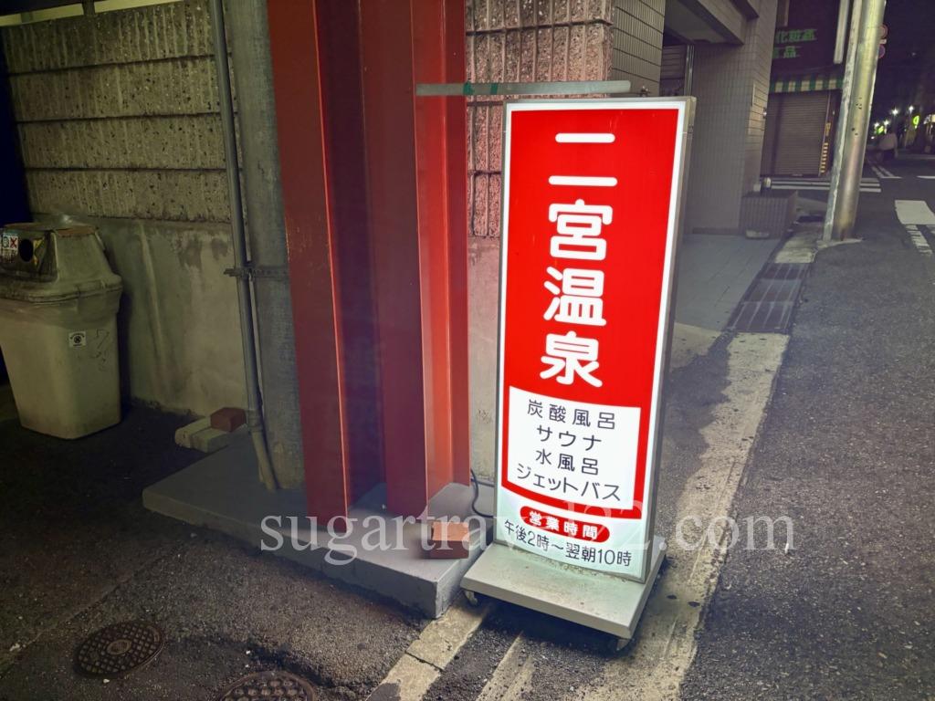 こちらがゲストハウスから徒歩2分の銭湯「二宮温泉」です。