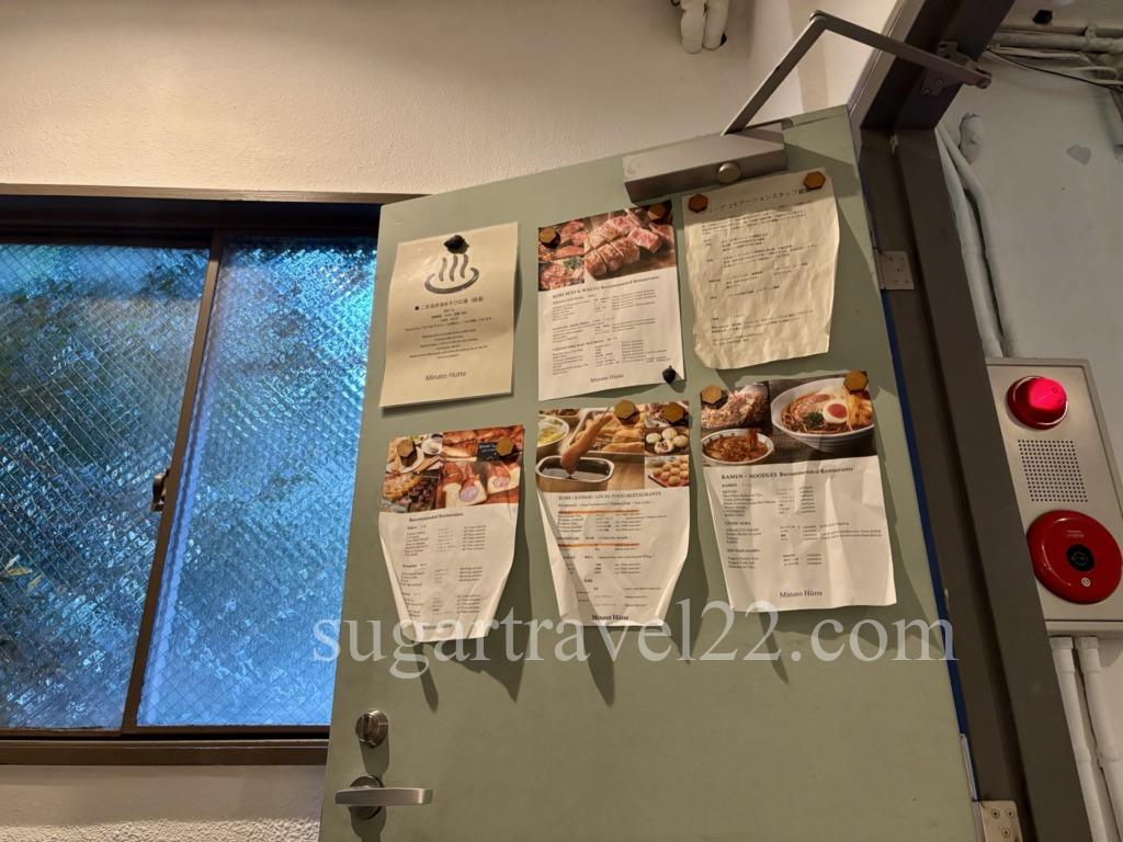 Minato Hütte チェックイン、フロント、館内の様子