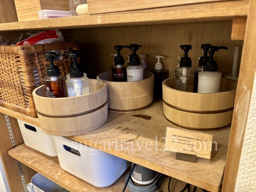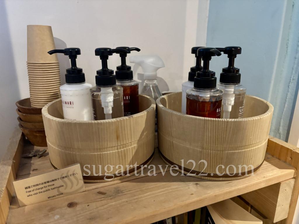 メイク落とし、シャンプー、トリートメント、ボディソープがひとまとめにセットになっており、このまま近隣の銭湯に持っていくことができます。