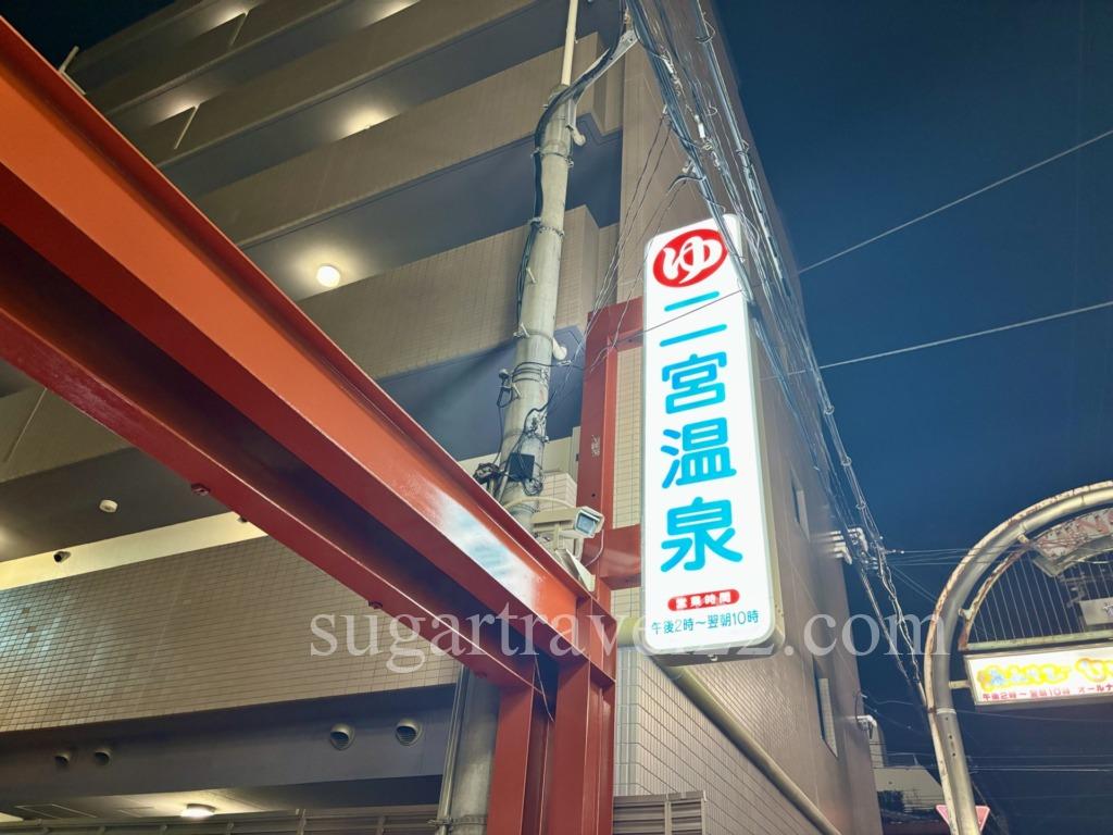こちらがゲストハウスから徒歩2分の銭湯「二宮温泉」です。