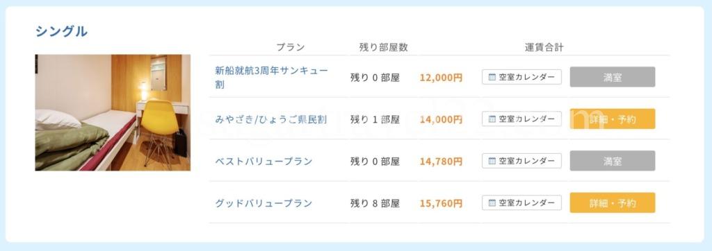 私はルートに悩みすぎて手配が遅くなってしまったため、シングルをベストバリュープランで予約しました。