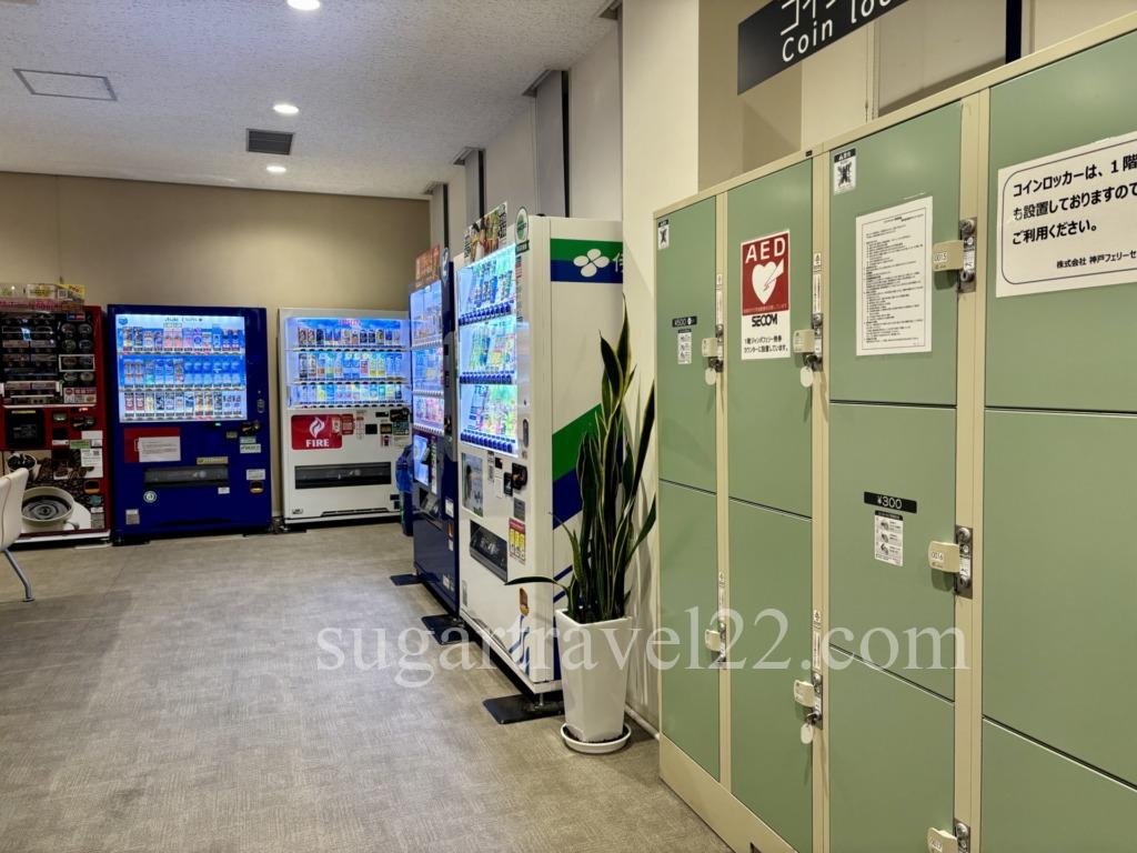 「神戸三宮フェリーターミナル」内にはお菓子やソフトドリンクの自動販売機はありますが、売店はありませんので、お酒などが必要な場合は事前に調達しましょう。