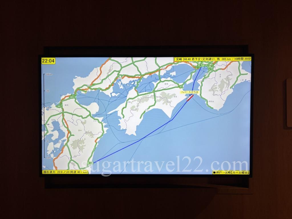 神戸から宮崎港の場合、出港後比較的ずっとスマホのキャリアが繋がっていました。