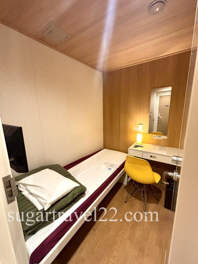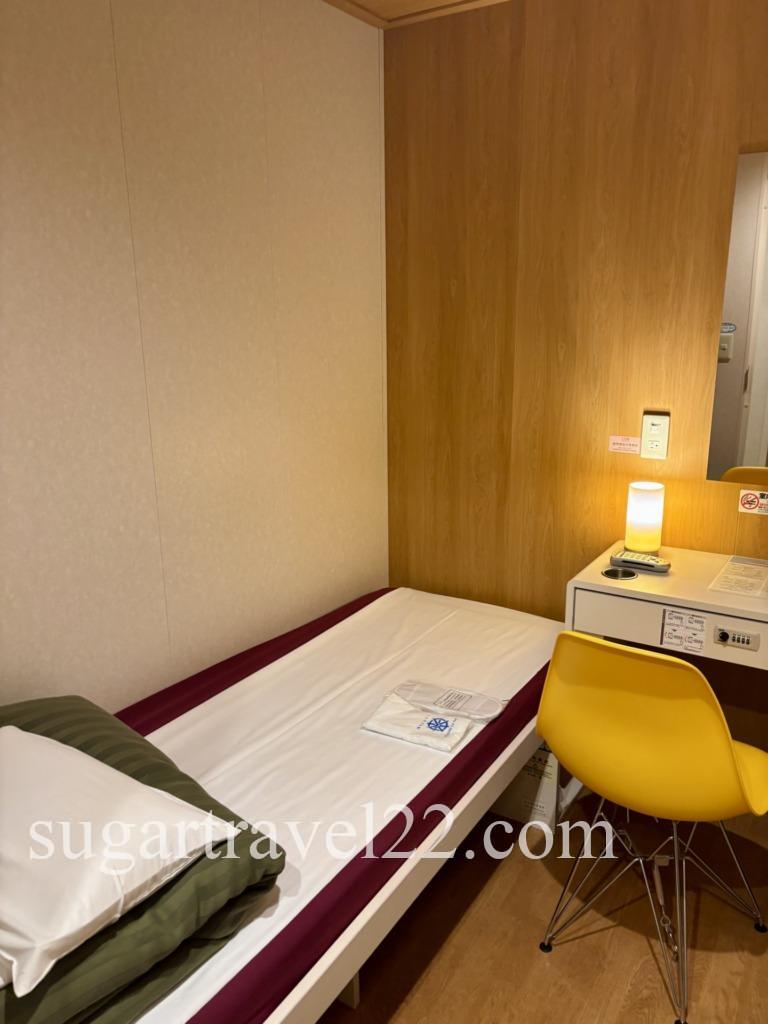 ベッドはセミシングル?くらいですが、1人なら十分です。