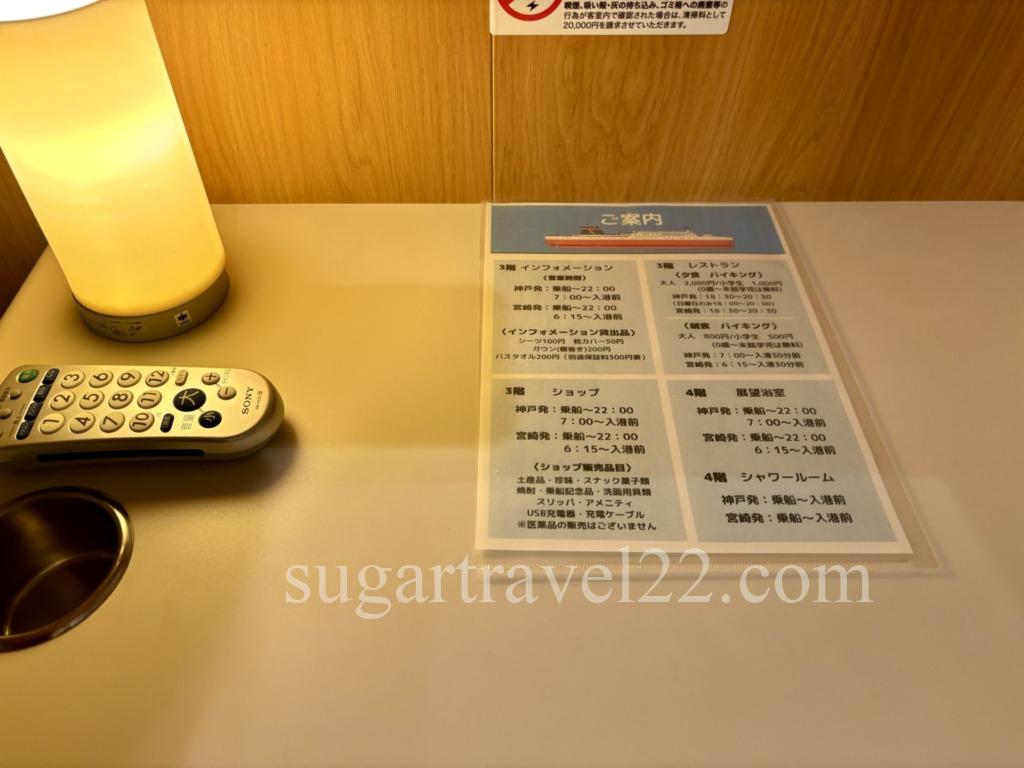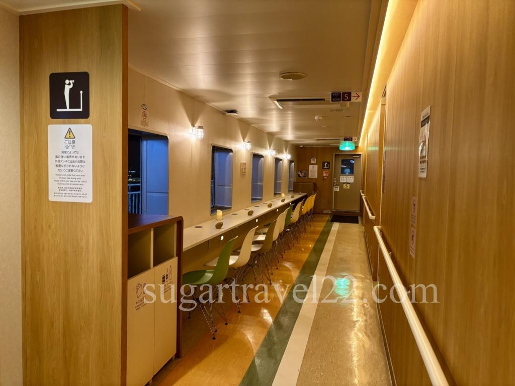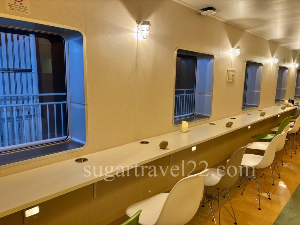 乗船時間が約13時間半ということで、食事+お風呂+睡眠を取るとあっという間で、かなり短い時間に感じました。
