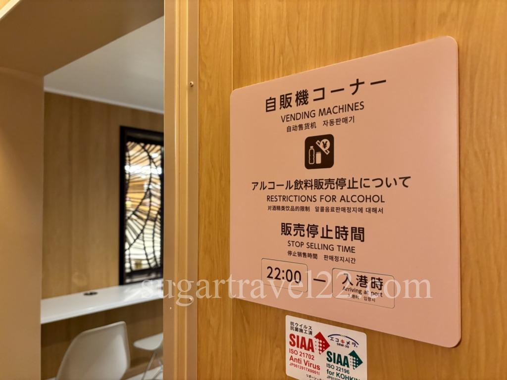「神戸三宮フェリーターミナル」内にはお菓子やソフトドリンクの自動販売機はありますが、売店はありませんので、お酒などが必要な場合は事前に調達しましょう。