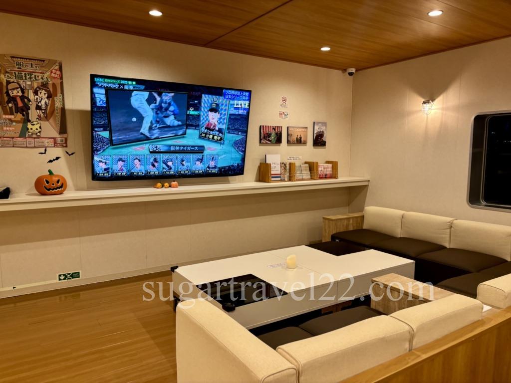 ソファーとテレビがあるので、なんだか一般家庭のような落ち着いた雰囲気です。