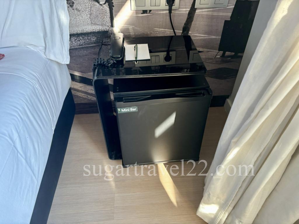 ベッドサイドの冷蔵庫の中にはお水とグラスが冷えていました。