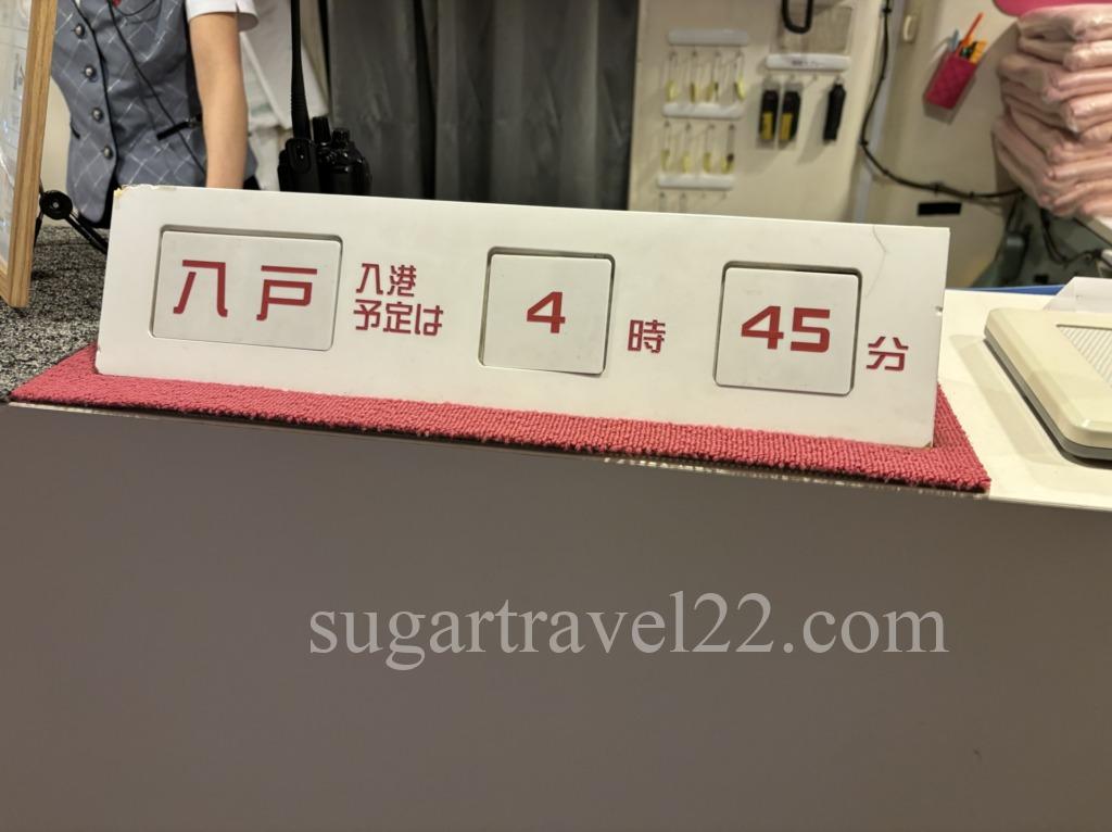 苫小牧からの乗船時間は7時間30分、八戸からは7時間15分の航海です。