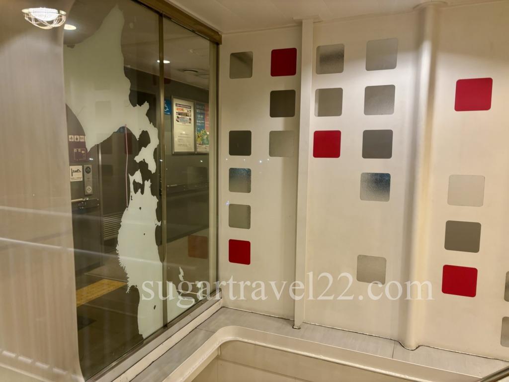 ここは客室の前なので、カーテンが開いてるとちょっと気まずいです。