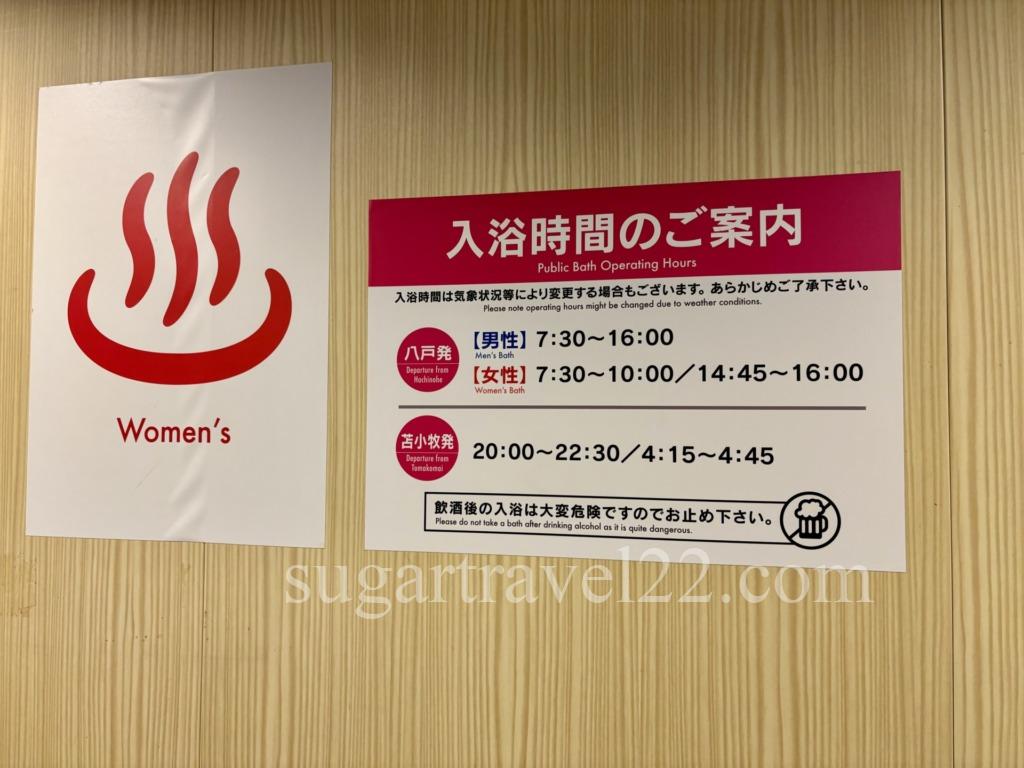 - 女性の大浴場は混むので乗船前にどこかの温泉に寄るのが良い