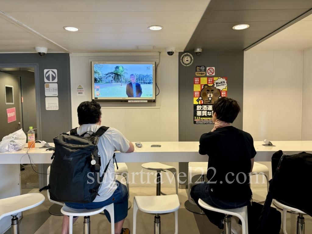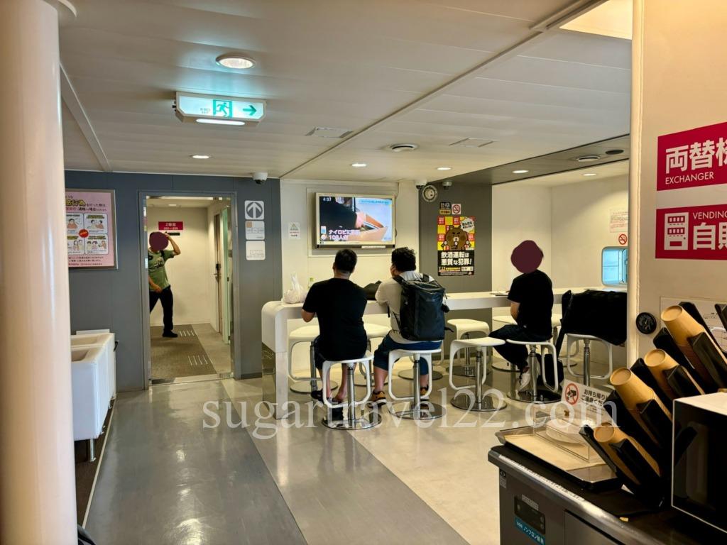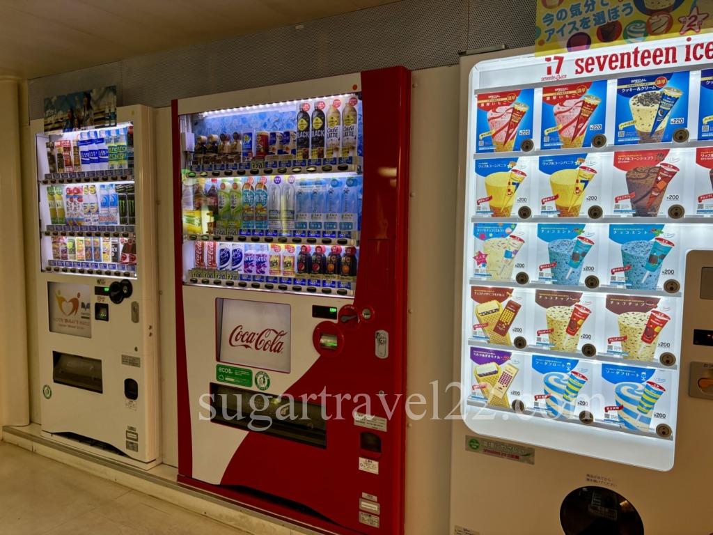 お酒の自販機はなさそうなので、ターミナルの売店で買いましょう。