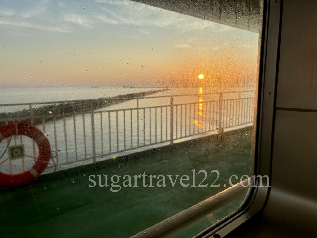 夏なので日の出は早そうですが、ほぼ暗い海の航海です。