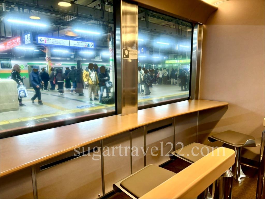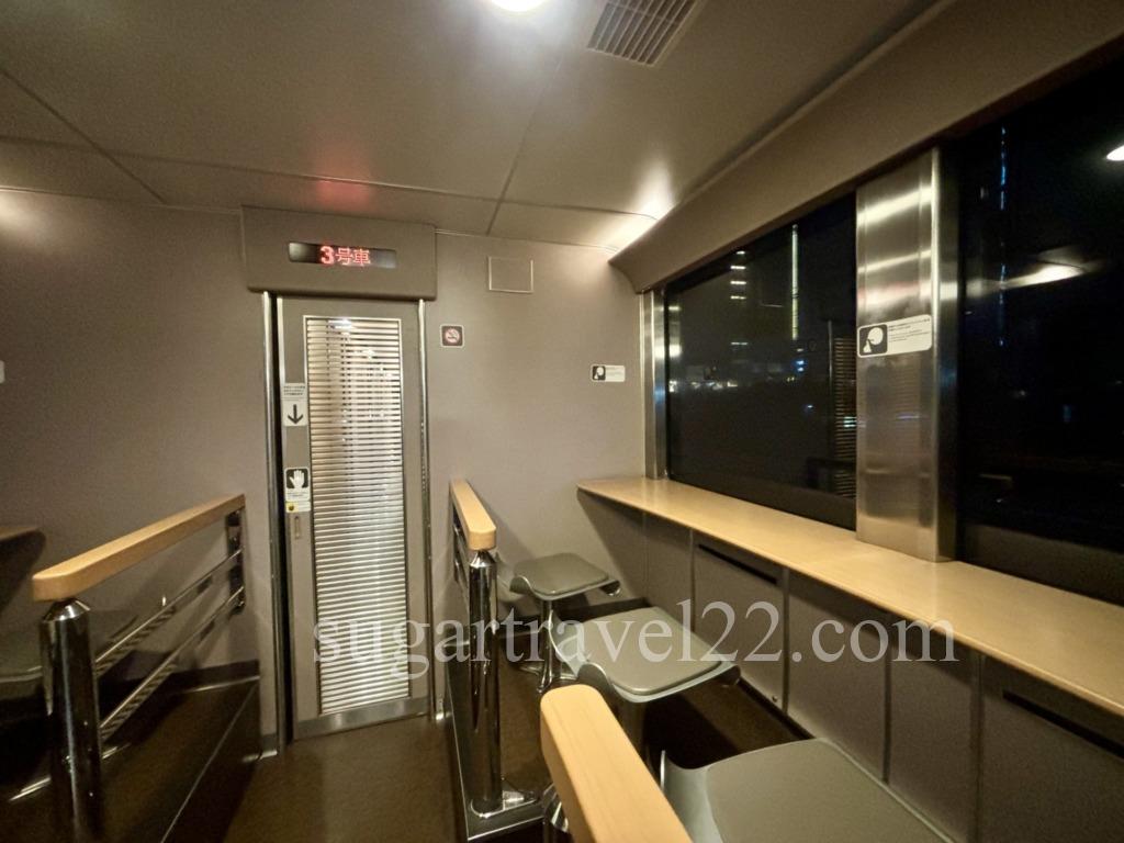 フリースペースのミニロビー(3・10号車)では車窓を眺めながら過ごすことが出来ます。