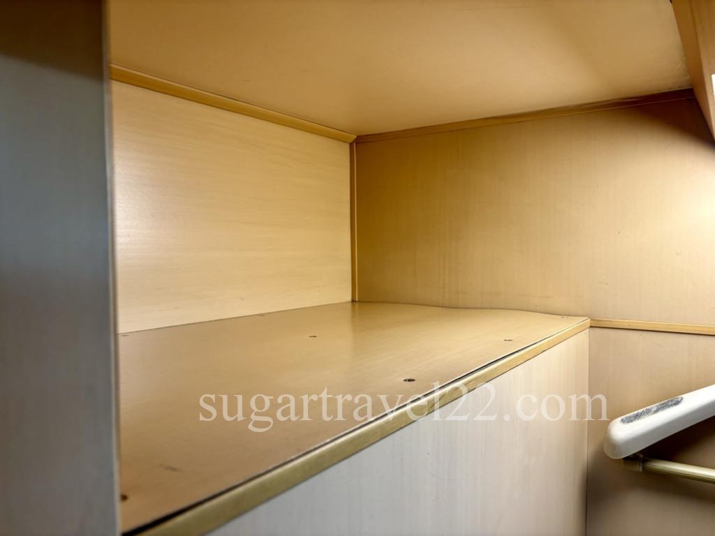 荷物置き場はベッドの奥に位置しており、荷物を持ち上げるのが大変なので、1階にするか、荷物を最小限にしたりバックパックにするか、1ランク上のB寝台「シングル」を選ぶこともおすすめします。私はキャリーケースだったので一苦労でした。