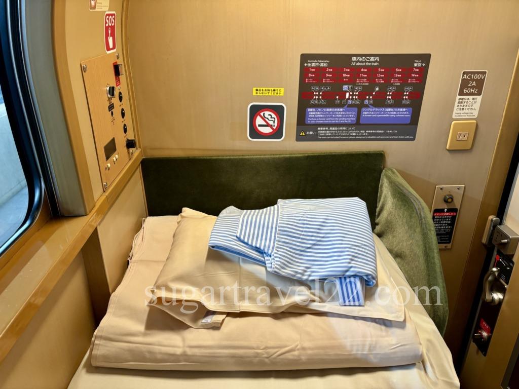 夜に出て朝に着くので、時間を効率よく使えるので旅行客にもビジネスマンにも重宝されているようです。