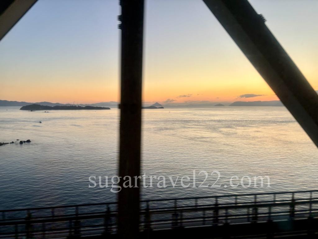 瀬戸大橋からの朝焼けの景色は綺麗でした。