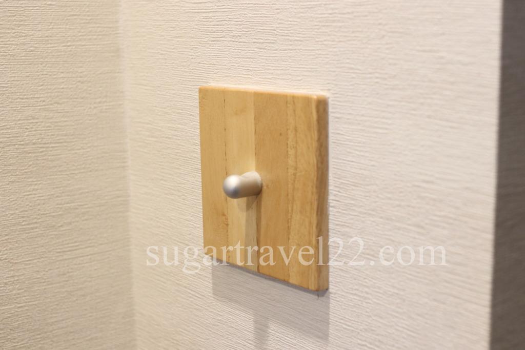 ドア横にはフック。このちょっとしたフックが鍵をかけたりできるので整理整頓が苦手な人間には便利でした。