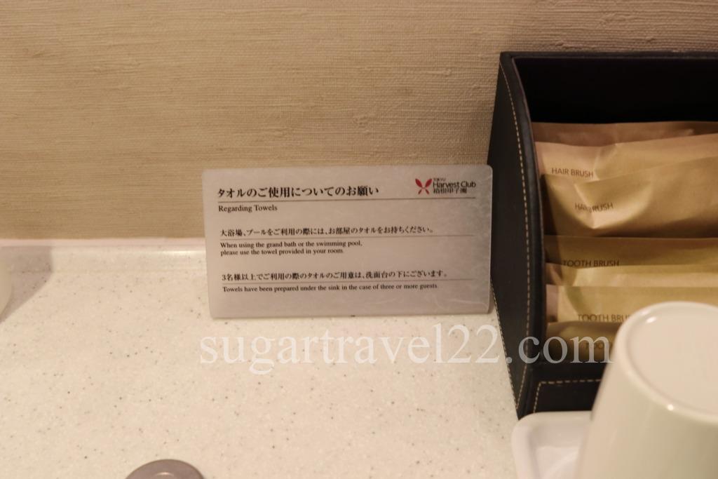 1つ気になったのは、タオルを自室から持っていかないといけないのと、使用済みのタオル入れがない点でしょうか。