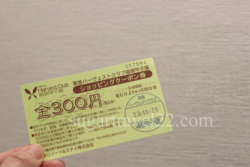 今回じゃらんで予約したプランには館内売店で使用できる300円のクーポンが付いていました。