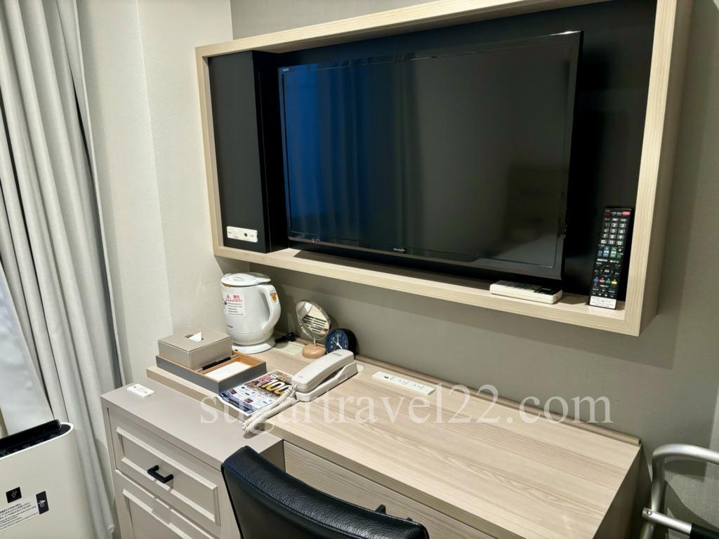 テレビはベッドから見ることのできる角度。
