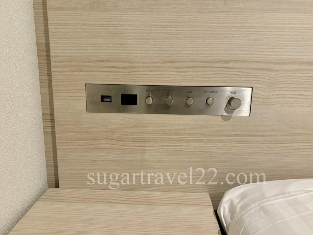 枕元にはコンセントとUSBポート。